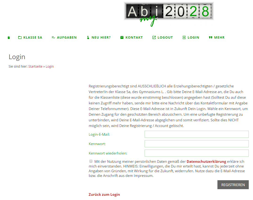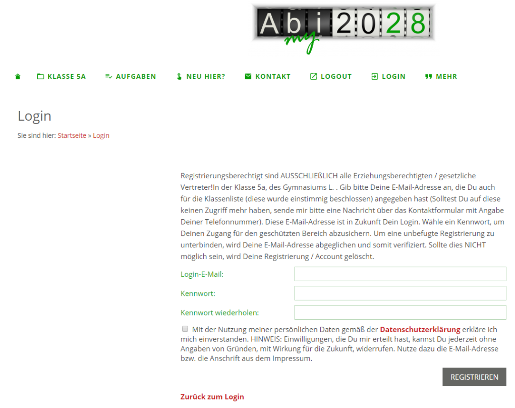 Die Webseite hat einen geschützten Bereich, indem alle Inhalte für uns erst nutzbar sind. Um in diesen Bereich zu gelangen, ist es notwendig, sich anzumelden. Bzw. eine Erst-Registrierung durchzuführen.